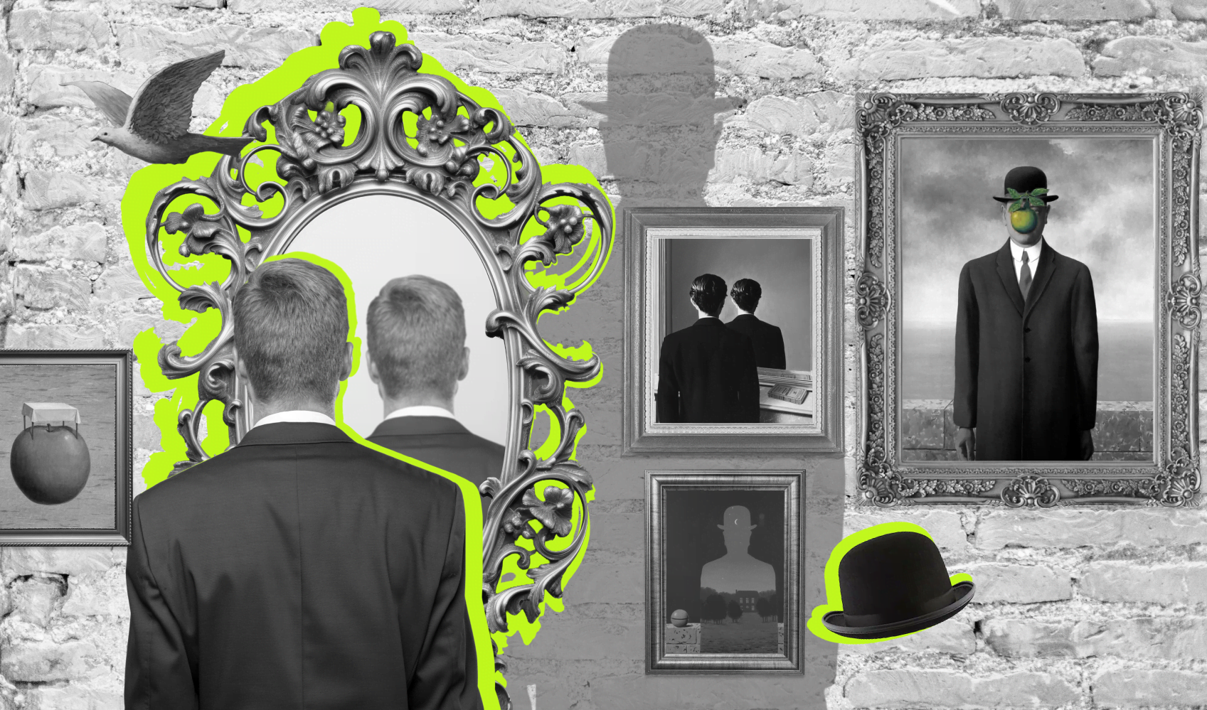 Зеркало у Магритта становится проекцией вытесненного. Мы ищем лицо, но встречаем архетип Тени — отвергнутую часть личности. Таким образом, оно превращается не в подтверждение идентичности, а в ее разрушение.